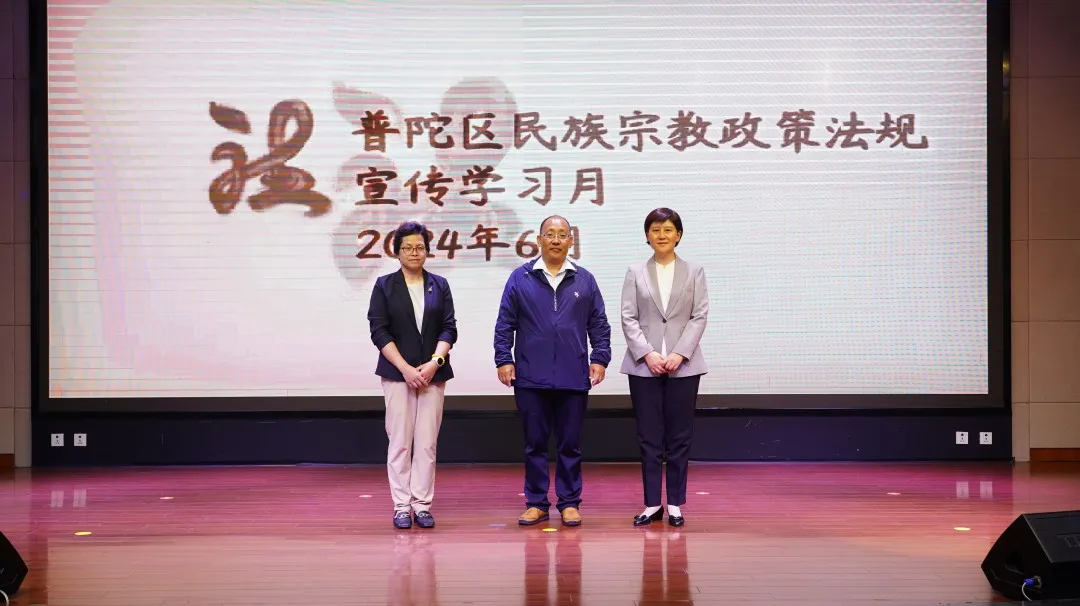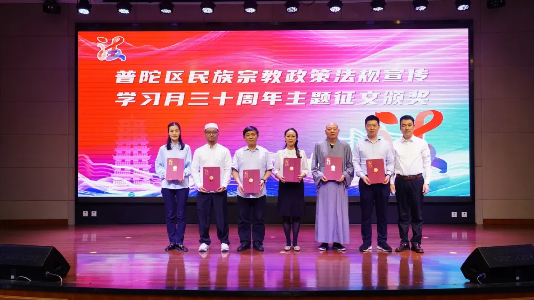 在市民族宗教局开展的“民族宗教政策法规宣传学习月”三十周年主题征文活动中,普陀区取得了一等奖3名、三等奖2名以及优秀组织奖的优异成绩。现场,杨旭东为获奖人员和单位颁发了奖项,进一步激发了大家学习和宣传民族宗教政策法规的热情。