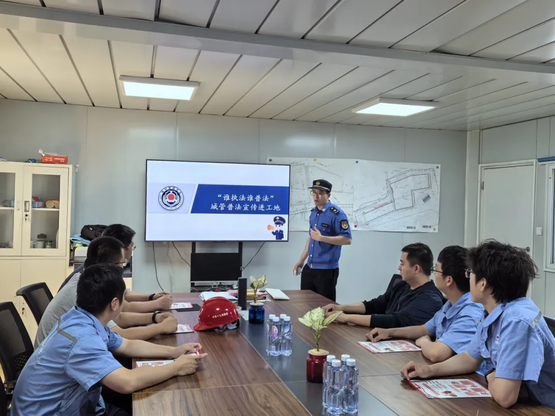 执法队员们来到曹杨路1888号的建设工地,重点检查了工地上施工人员电动自行车集中充电情况,同时结合“安全生产月”,现场开展了城管普法宣传小课堂,向施工人员逐条逐项宣传《条例》最新规定要求,督促施工人员按规按章开展安全生产工作。