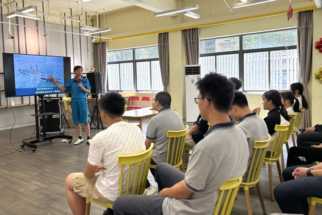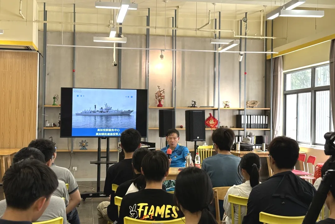 真如党群服务中心开展了一堂特别的故事分享会。退役老兵童宏芳向学生们分享自己乘风破浪、保卫海疆的难忘经历。童宏芳曾是一名海军,服役十余年。从蔚蓝深海的日常训练,到紧急救援的惊心动魄,他用质朴的语言向大家讲述着故事。每一个故事都如同波澜壮阔的海浪,“拍打”着在场每个人的心弦。