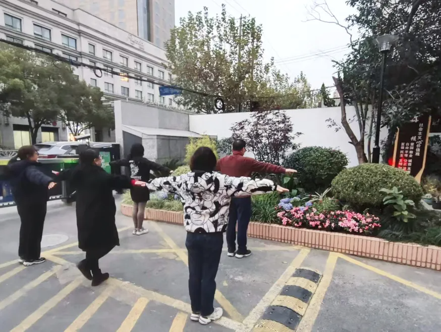 中亚公寓的阿姨爷叔们照常进行锻炼。王阿姨做着拉伸,脸上洋溢着满足的笑容:“哎呀,这改得真是太好了!现在出门看到这满眼的绿意,心情跟着舒畅。”