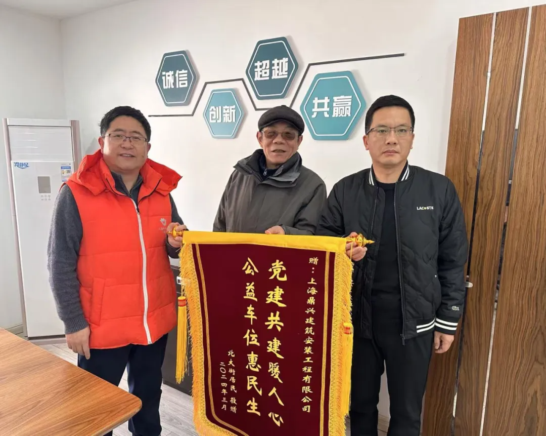 鼎兴建筑装饰有限公司与居民区党总支共同探讨缓解小区停车难问题的对接方式,并在街道的支持下达成共建合作,通过公开招募方式为小区5户居民提供共享停车位。
