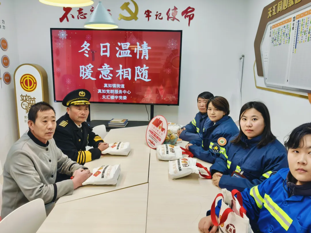 寒冷冬日,户外工作者同样牵动着大家的心。为进一步加强对新业态新就业群体的关心关怀工作,让他们切实感受到“真如温度”,工作人员走进天汇楼园区等户外职工暖心接力站,向坚守在岗位上的快递员、外卖配送员、环卫工人等新就业群体送上街道总工会的爱心礼物——暖贴、手套和护手霜。