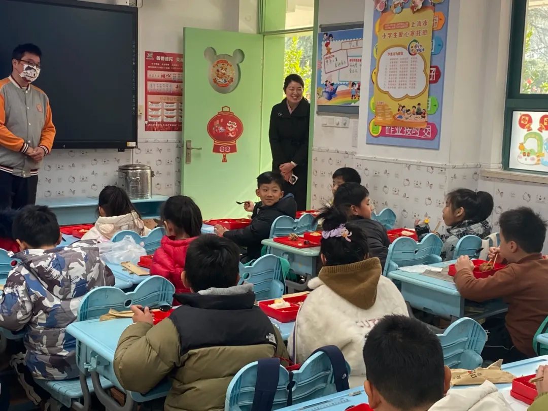 开班第一天,团区委书记吕欢来到真如镇街道小学生爱心寒托班教学点真如三小,视察寒托班开班情况,看望寒托班学生。