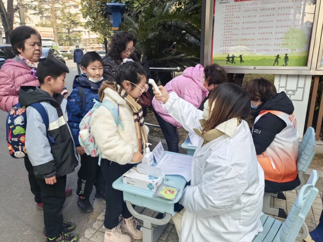 入校第一步,街道社区卫生服务中心的医务人员作为晨检老师为孩子们进行测量体温等晨检,在签到完成后,孩子们在大学生志愿者的引导下兴高采烈地步入寒托班教室,开启愉快的寒托班生活。