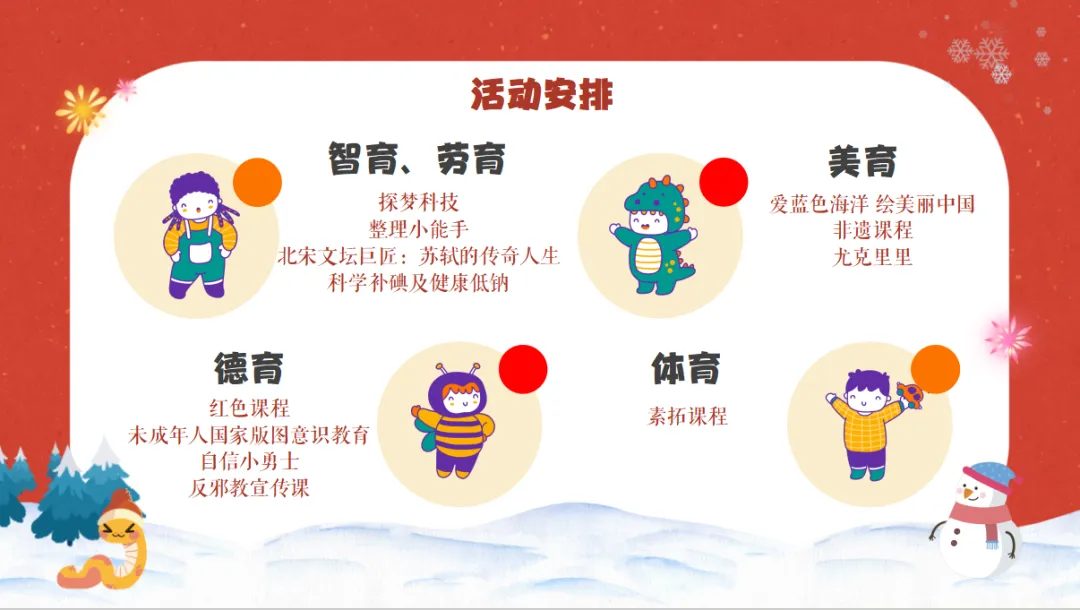 为让孩子们更好地适应寒托班生活,街道紧紧围绕德智体美劳“五育”,通过红色课程、未成年人国家版图意识教育、探梦科技、素质拓展、尤克里里、艺术创意DIY等一系列丰富多样且充满趣味的活动,让孩子们在快乐中学习。