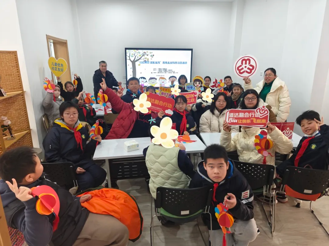“融爱共赏”普特儿童科普融合活动中,来自上海师范大学附属第二实验学校的学生与“星宝”孩子在老师和志愿者协助下,通过自我介绍、才艺展示和简单游戏打破陌生感。他们一起制作创意节日灯笼,烘焙美味披萨,互帮互助、耐心交流、默契配合,为他们的成长之路搭建起一座充满爱的友谊桥梁。