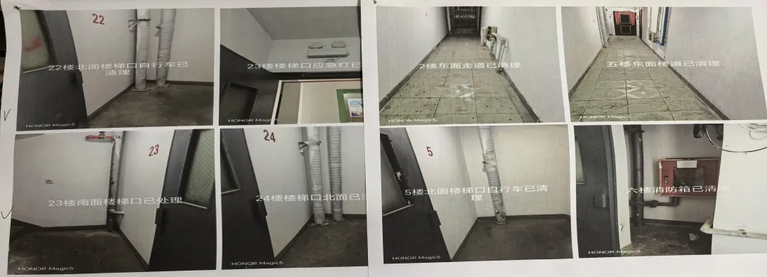 在每周四爱国卫生义务劳动日,楼组党员和专职网格员共同对楼道逐层排查,并详细记录楼道堆物情况,对顽固或回潮的堆物情况通过张贴温馨告示、上门沟通劝导等方式帮助居民进行处理。真西五居民区党总支同时制定了定期巡查和季度评优的机制,经过整治的楼道干净整洁,“美丽家园”的典范已初具模样。