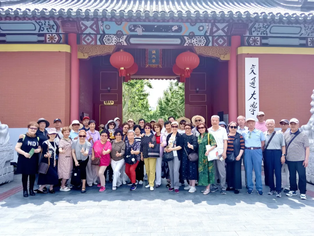 随后,大家一同走进百年学府交通大学徐汇校区,古朴的建筑与深厚的文化积淀相映生辉。在老图书馆、百年校庆纪念碑、五卅纪念柱等承载历史记忆的地标前,大家驻足聆听百年交大在统一战线事业中的光辉历程。