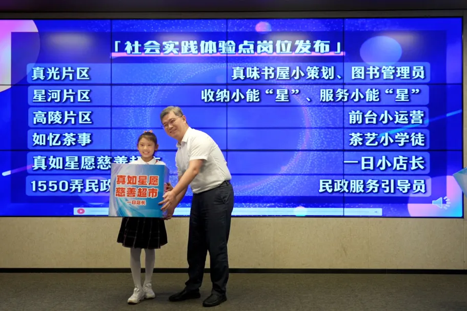 活动还同步发布了未成年人社会实践体验岗位,将联动真如星愿慈善超市、“如忆茶事”馆等辖区六大站点,推出真味书屋小策划、图书管理员、收纳小能“星”等岗位。通过真实社会实践,孩子们在实践中学会责任与协作,让青春在可量化的服务成果中绽放自信光芒。